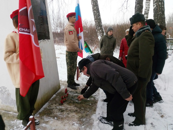 Участники митинга выразили свою сопричастность к историческим событиям прошлого века и отдали дань благодарности своим прадедам, защищавшим Родину от врага и погибшим на полях сражений. В завершение мероприятия участники митинга возложили живые цветы и почтили память погибших, минутой молчания.