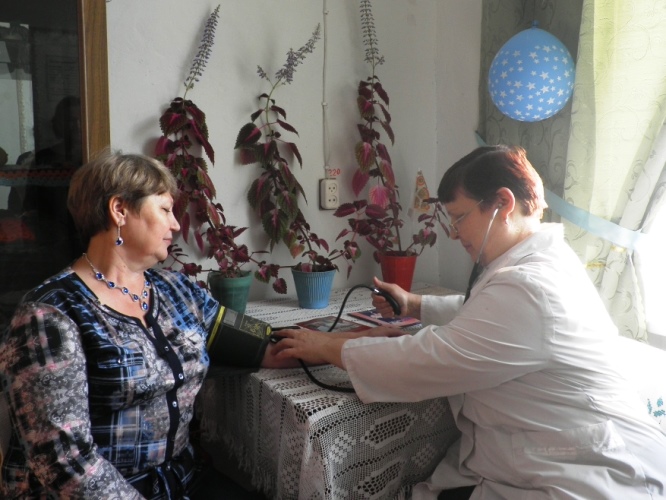 Фельдшер Старочекалдинского ФАП Королева Е.Г перед началом собрания граждан проверила контроль артериального давления у всех желающих.