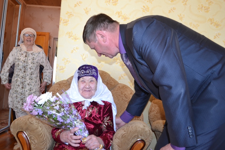 Гости пожелали юбиляру крепкого здоровья, долгих лет жизни, внимания и заботы близких ему людей, вручили поздравительные открытки Президента Российской Федерации В.В. Путина, Главы Агрызского муниципального района В.В. Макарова, памятный подарок.
