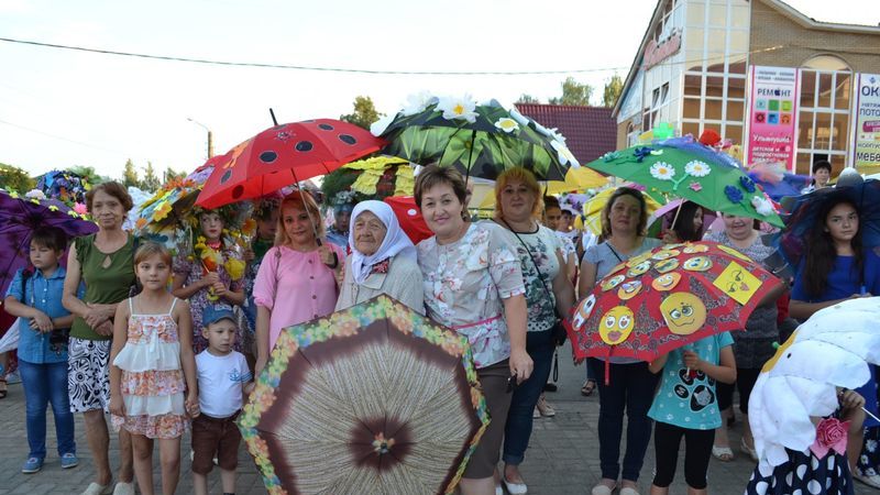 Удивила богатая фантазия участников парада в оформлении зонтов. Охвачена обширная тематика. Тут были и сказочные герои, и цветы, в том числе подсолнухи, и овощи, и грибы. Некоторые зонты изготовлены из ивовых прутьев, некоторые – из кружев, некоторые – из лент. Не стоит удивляться и тому, что в оформлении многих зонтов отражен юбилей Агрыза. Нашлось место и эмблеме города, флагу, даже символу города железнодорожников – паровозу.