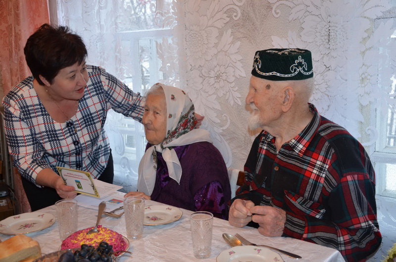 В день юбилея Назиму апу поздравила первый заместитель Руководителя Исполнительного комитета Агрызского муниципального района РТ Гильмутдинова Римма Ринатовна. Вручив поздравительные открытки Президента России Путина Владимира Вламировича и Главы Агрызского муниципального района РТ Макарова Валерия Владимировича, а также подарок, она пожелала ветерану крепкого здоровья, тепла и любви близких людей.