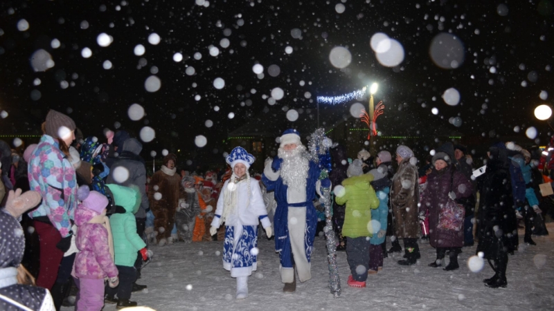 Сказочные герои, приветствуя агрызцев, прошествовали по центральной улице к главной елке. Здесь вместе с участниками парада от души повеселились и стар и млад. Дружно пели, плясали и играли, водили хоровод. Затем с помощью волшебных слов зажгли огни на елке.