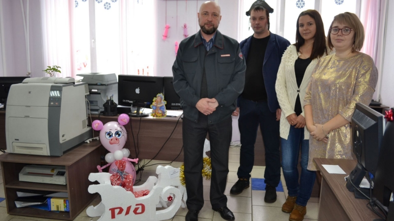 Второе место занял технический отдел. Их кабинет украшает нарядная ёлка, также сквозь бурю и метель мчится паровоз и спешит доставить символ нового года к празднику.