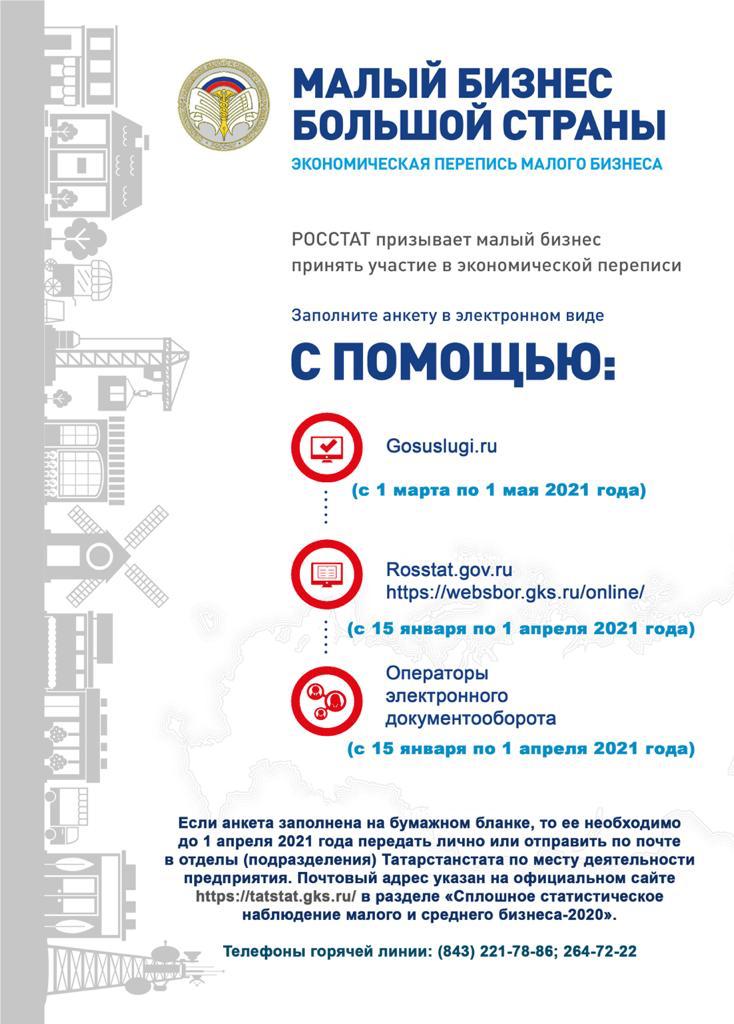 Если анкета заполнена на бумажном бланке, то ее необходимо до 1 апреля 2021 года передать лично или отправить по почте в отделы (подразделения) государственной статистике в районах и городах Татарстанстата по месту деятельности предприятия. Почтовый адрес указан в разделе «Сплошное статистическое наблюдение за деятельностью малого и среднего бизнеса за 2020 год».