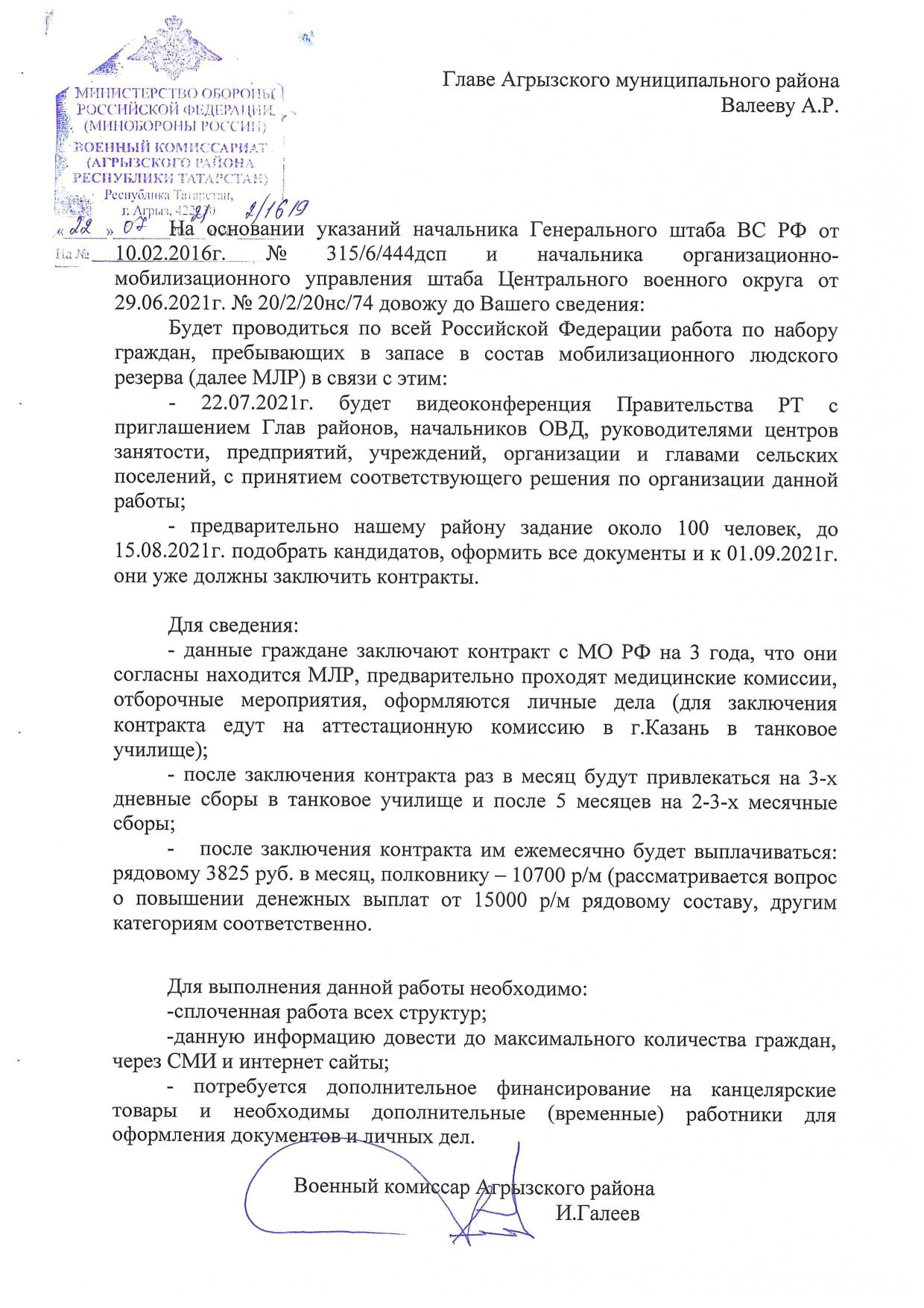 В Российской Федерации ведется работа по набору граждан, пребывающих в запасе в состав мобилизационного людского резерва