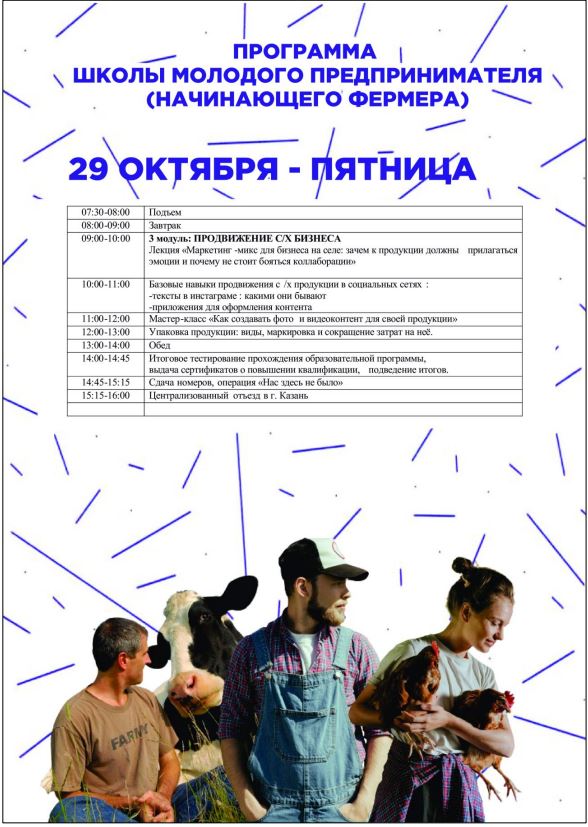 С 27 по 29 октября 2021 года на базе МЦ «Волга» пройдет Школа молодого предпринимателя «ФерМир» (далее – Школа), направленная на развитие базовых компетенций в области сельскохозяйственной производственной деятельности в малых формах хозяйствования. Мероприятие проходит в рамках реализации регионального проекта «Создание системы поддержки фермеров и развитие сельской кооперации» Региональной общественной организации «Аграрное молодежное объединение Республики Татарстан» совместно с Министерством сельского хозяйства и продовольствия Республики Татарстан.