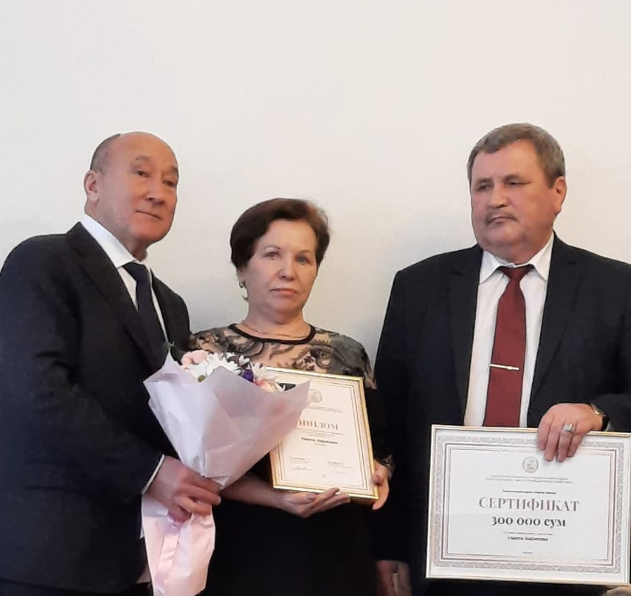 Руководитель комиссии Марат Ахметов и председатель Союза писателей РТ Ркаиль Зайдулла поздравили Наилю Харисову с большой победой и вручили ей Диплом и сертификат на 300 тысяч рублей.