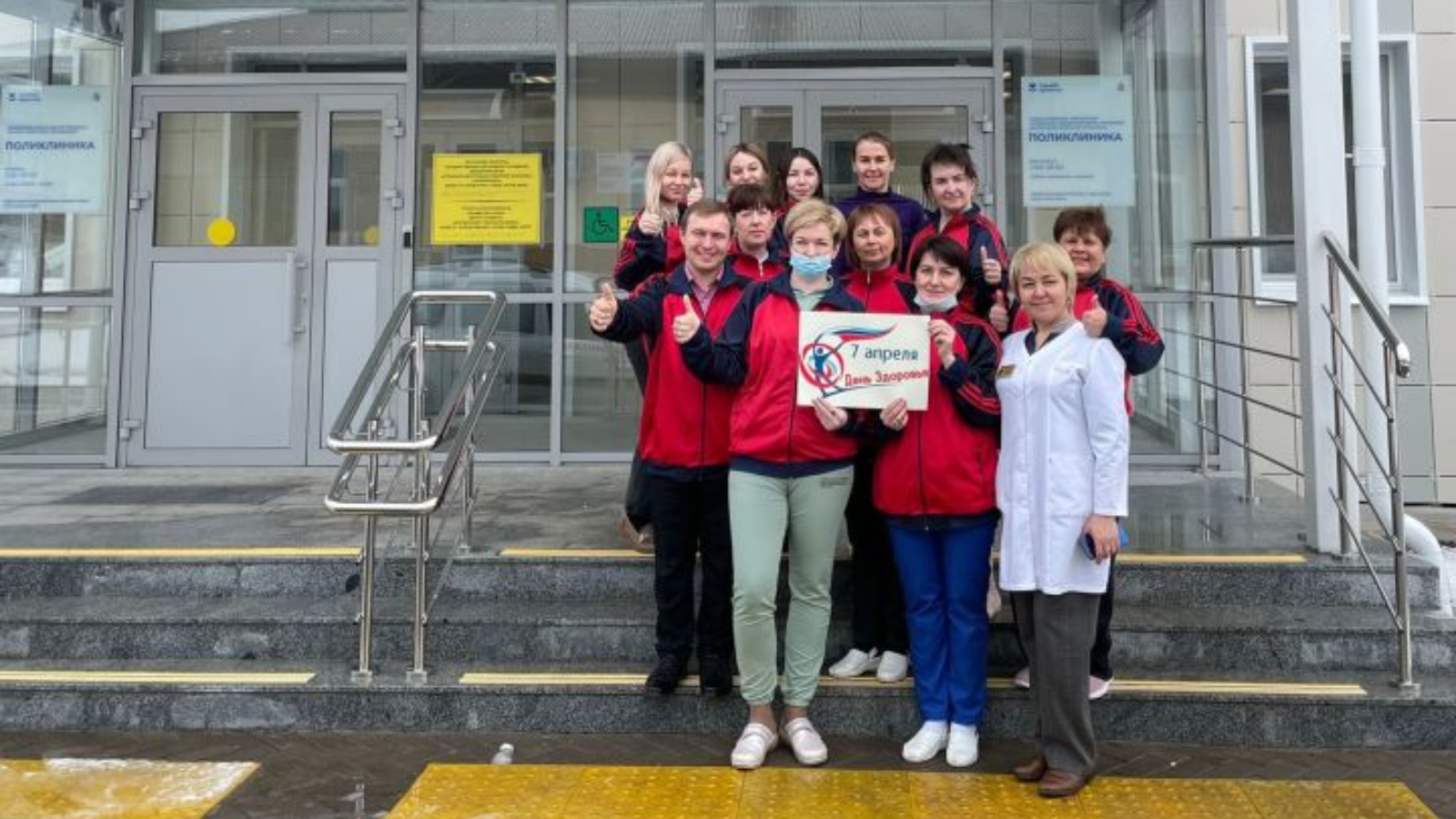В этот день коллектив поликлиники, несмотря на насыщенный и плотный график, посвятили свой 15-минутный перерыв активной зарядке, которую провела тренер по адаптивной физкультуре Альбина Рахматуллина.