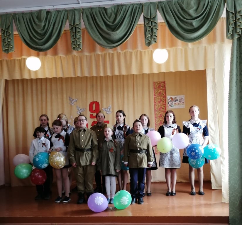 Праздничный концерт был поставлен учениками и коллективом учителей Азевской ООШ. В программе были представлены художественные номера: стихи, танцы, сценки, песни военных лет.