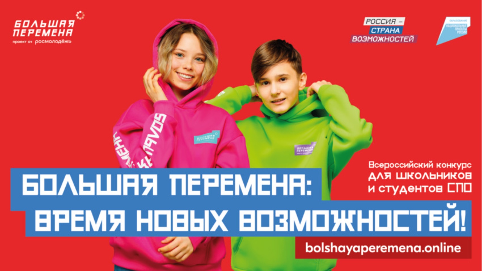 Целью Всероссийского конкурса «Большая перемена» является выявление обучающихся с активной жизненной позицией, нестандартным мышлением, творческими способностями, активной социальной позицией, которые не боятся проявлять себя, учиться новому, самосовершенствоваться, менять мир к лучшему в своих сообществах, группах, школе, регионе, стране.