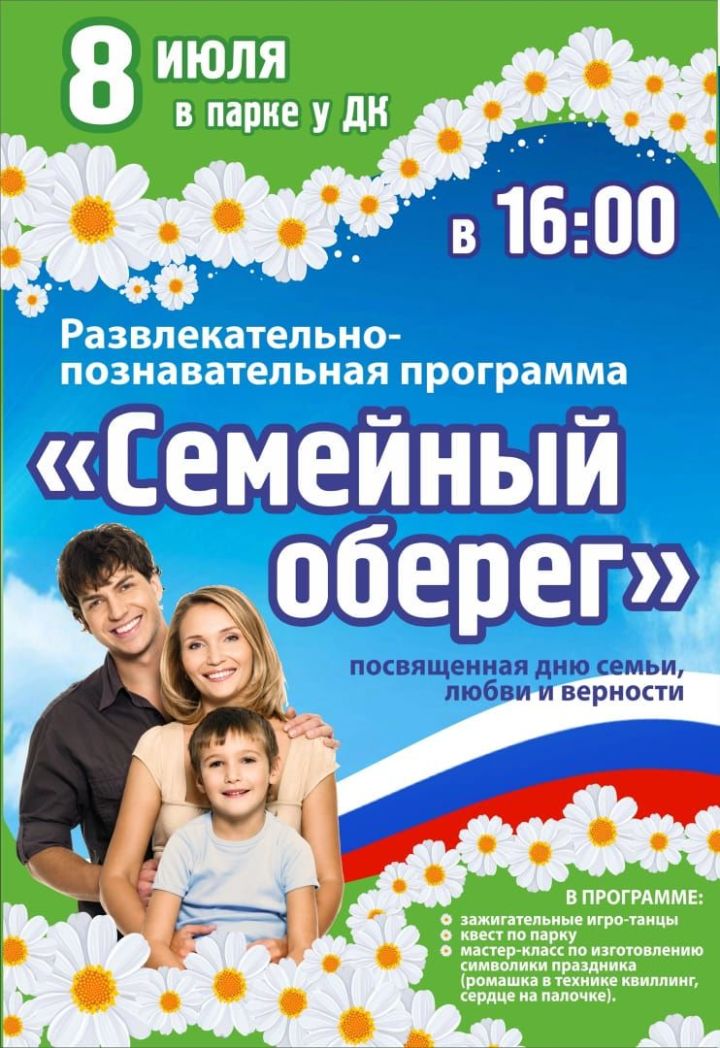 В рамках праздника 8 июля на центральной площади Агрыза состоится развлекательно-познавательная программа "Семейный оберег".
