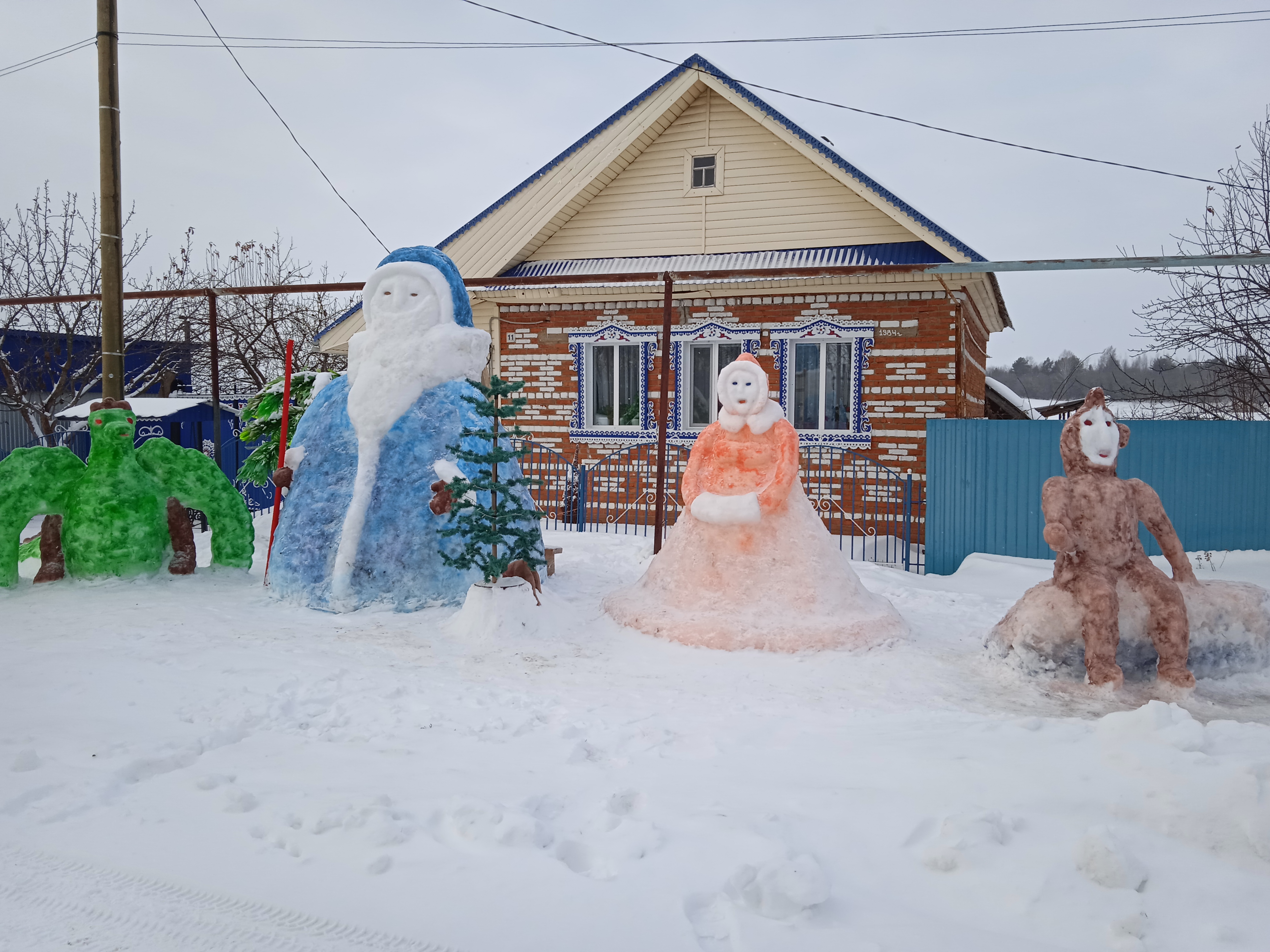 Семья Айсины и Фаиза Шабаевых из села Новое Аккузино каждый год с большой готовностью встречает Новый год. Окрестности дома украшают снежными скульптурами.