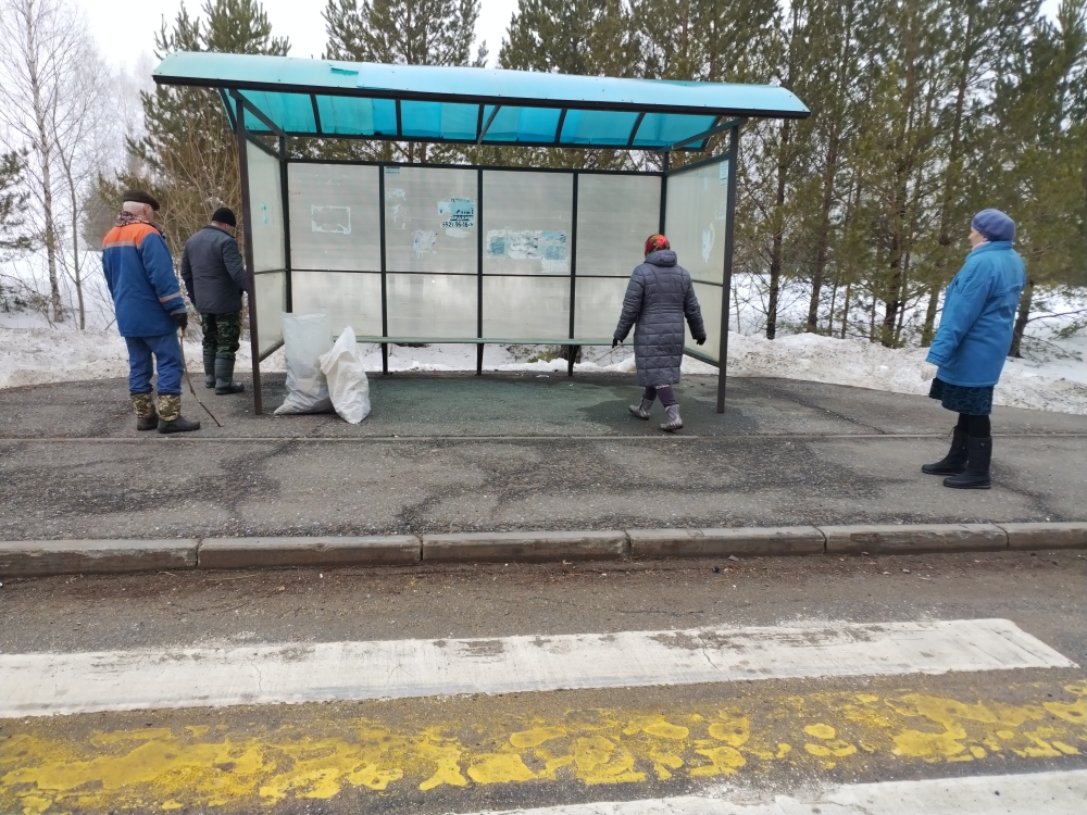 -01 апреля, 15 апреля 2024 года прошли субботники по очистке от мусора территории у остановочных павильонов и придорожной полосы части дороги Старая Чекалда –Красный Бор;