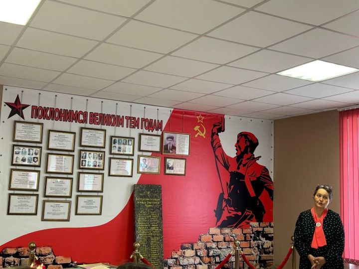 На стене представлены документы Музея Боевой Славы, который был открыт в 1965 году к 20- летию победы над фашистской Германией. Материалы были собраны "Красными следопытами" - волонтерским отрядом под руководством учителя русского языка и литературы Гатауллиной Зебарзят Ахметовны.