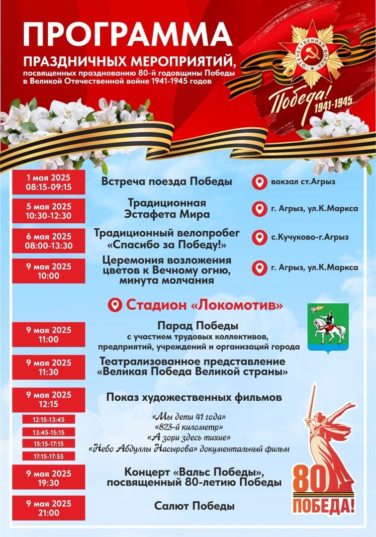 9 мая с 10.00 на Площади Победы у Вечного огня состоится памятная акция возложения цветов и минута молчания. С 10.00 до 11.00 улица К.Маркса будет перекрыта, в это время осуществляется переход участников к стадиону. В этом году будет представлен масштабной уникальный проект «Стена памяти». Большая экспозиция с фотографиями и именами наших земляков-героев создана специально и посвящена Году защитника Отечества и 80-летию Победы в Великой Отечественной войне.