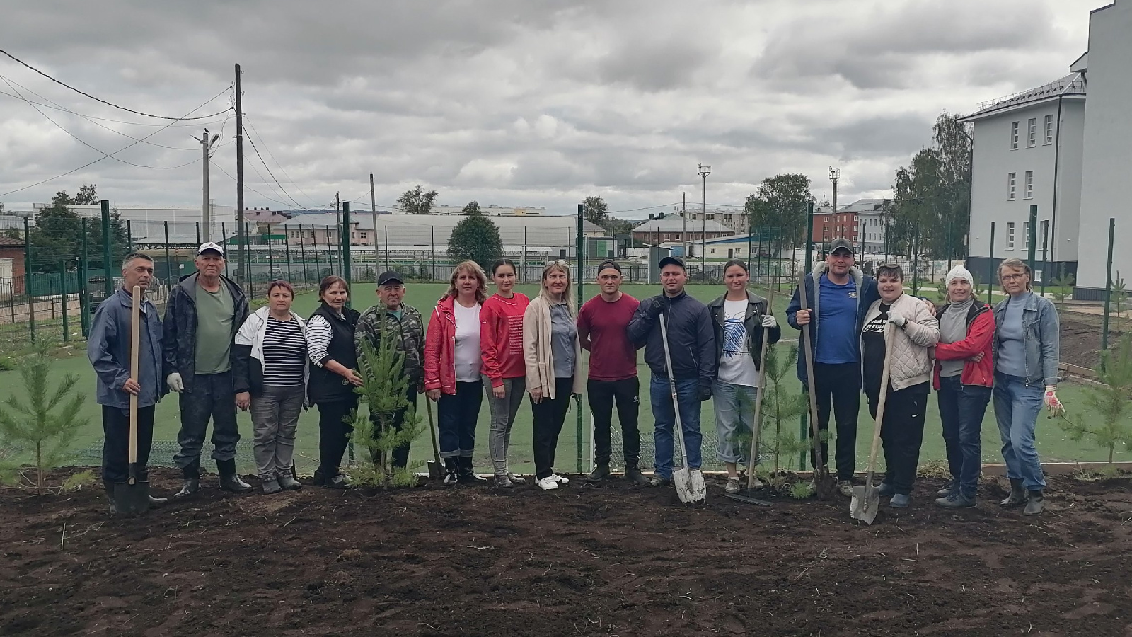 У спортивной площадки возле школы №4 г.Агрыз высадили 30 саженцев сосен.