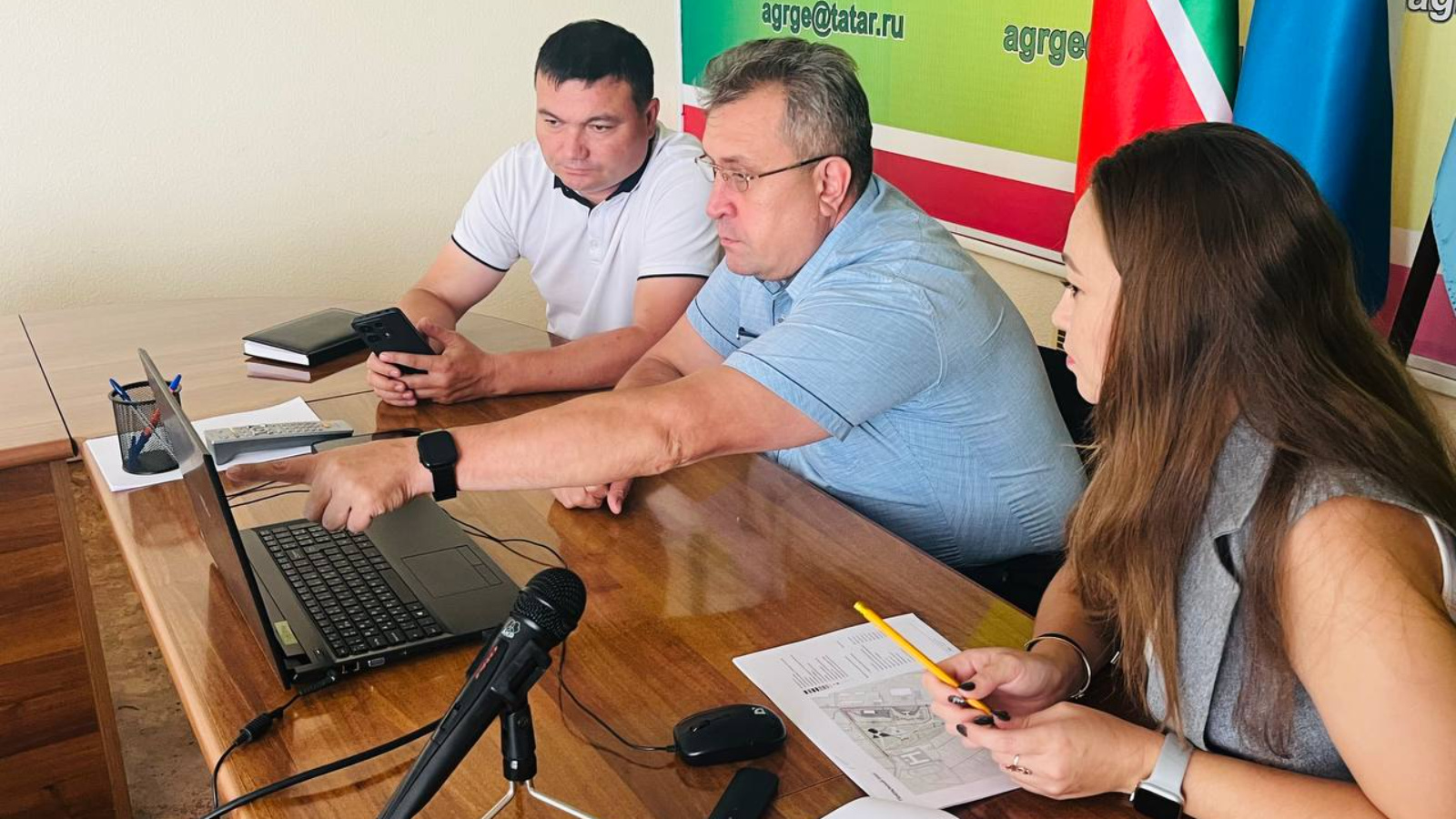 Руководитель исполкома района Ильгиз Салихов совместно с начальником отдела строительства, архитектуры и градостроительства Иделией Монасыповой и руководителем ИК МО "г.Агрыз" Ильнаром Гиззатуллиным провел совещание с проектировщиками по концепции развития и благоустройства территории строящейся школы в нижней части Агрыза.