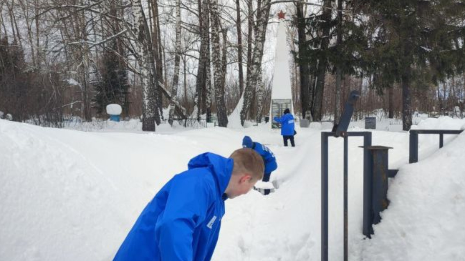 Участники «Снежного десанта» полностью расчистили подходы к памятнику и прилегающую территорию от снега.