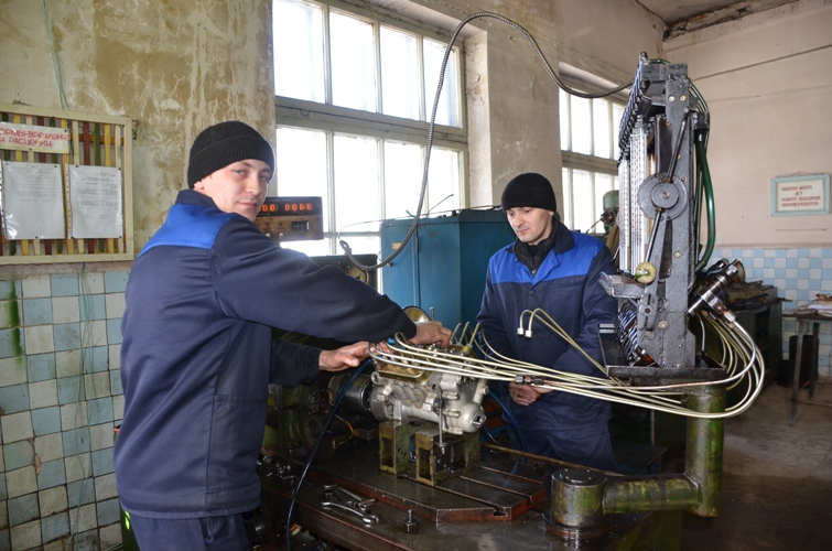 Обходим вместе с ним ремонтные мастерские. Кроме работников 5-го участка, здесь много таких, кто привез ремонтировать свою технику из других отделений. Входим в цех по ремонту топливных аппаратов. Здесь работают братья Радик и Фаниль Гимазетдиновы из Кучукова.