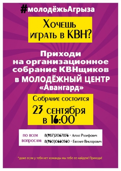 Тогда тебе к нам! 23 сентября уже в эту ПЯТНИЦУ в 16:00 орг. собрание КВНщиков! Нам нужны веселые и находчивые, а если ты думаешь, что не такой, но хочешь таким стать? Приходи - научим.