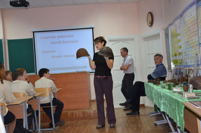 Председатель УдРМОО «Долг» Фаиль Ибрагимов рассказал о самой организации, ее благородной и интересной деятельности. Заместитель председателя Наталья Суетина ознакомила с выставкой, где были представлены найденные во время раскопок, вещи советских и фашистских солдат.