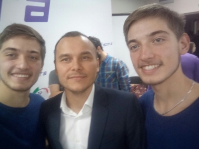 Мы поехали в школу! Приезжаем мы в Казань, там пересаживаемся на автобус и дальше едем в лагерь "Волга". И как КВНщики удивились, когда в аудиторию вошел Михаил Наумович Марфин – редактор высшей лиги КВН и следом за ним Айдар Гараев – участник команды КВН СОЮЗ. Первые два часа они отвечали на наши вопросы, после мы сделали небольшую паузу и начали занятие. В день заезда всех ребят поделили на 6 команд. Получилось так, что в твоей новой команде не было твоих старых друзей. Ребята съехались со многих городов: с Москвы, с Питера, с Сыктывкара, с Уфы, с Челябинска и т.д.