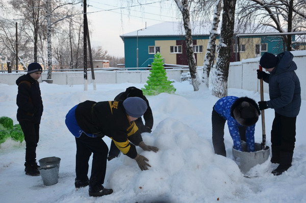 В райцентре учреждения и организации начали строительство ледяных городков. Полным ходом идет творческая работа в коррекционной школе.