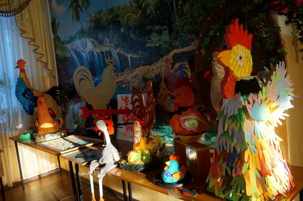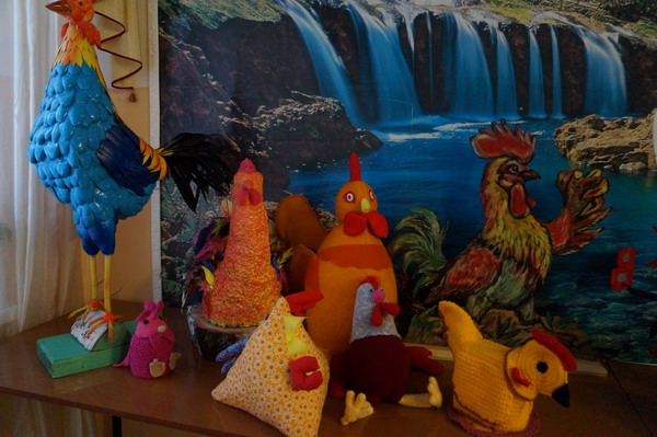 А вот в приюте "Ласка" объявлен конкурс петухов- поделок, в котором принимают активное участие как сотрудники приюта независимо от должности, так и воспитанники. Каких только петушков здесь можно увидеть- все они изготовлены в разных техниках, в разных тонах и красках. Это мастерство видят и воспитанники приюта, чувствуют красоту и мощь рукоделия. Тем самым у детей формируется эстетический вкус, чувство прекрасного и чувство гордости за своё творение.