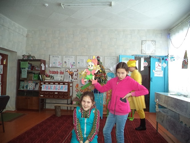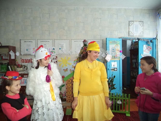 6 января библиотекарь, Мусина Рафиса Рашидовна в Иж-Бобьинской сельской библиотеке во время зимних каникул, для учащихся 1-6 классов провела вместе с ребятами мероприятие «Әкият геройлары - бездә кунакта”. Герои сказки – Ну, погоди, курица-Айка, цыплёнок-Дилька, зайка и петух-Петька показали отрывок из мультфильма “Ну, погоди”. Ребята отгадывали загадки, рассказывали стихи, пели песни. Проведены игры -“Кыш бабай капчыгы”, ”Кар бөртекләре”, ”Нәрсә ул, кем белә?”.