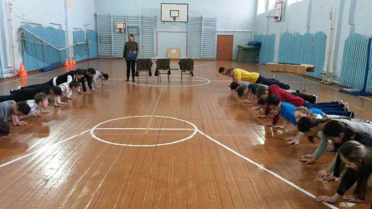 Марш-бросок начался с построения, где нас ознакомили с конкурсами. В первом испытании было предложено разместить в правильном порядке различные этапы дня в армии. Мои одноклассники быстро встали в нужной, по их мнению, последовательности. Далее мы разделились на два отделения. Второй конкурс делился на несколько этапов. Каждому отряду нужно было встать в алфавитном порядке в соответствии своим фамилиям, размера обуви, величины ладони. Надо сказать, что было весьма увлекательно. В третьем конкурсе нас экзаменовали на знание военного дела. Каждому отряду задавались вопросы на военную тематику. Оказалось, что мы неплохо знаем начальную военную подготовку. Следующим конкурсом был конкурс «Подъем». Из каждого отряда выбирали по шесть человек: 3 мальчика и 3 девочки.