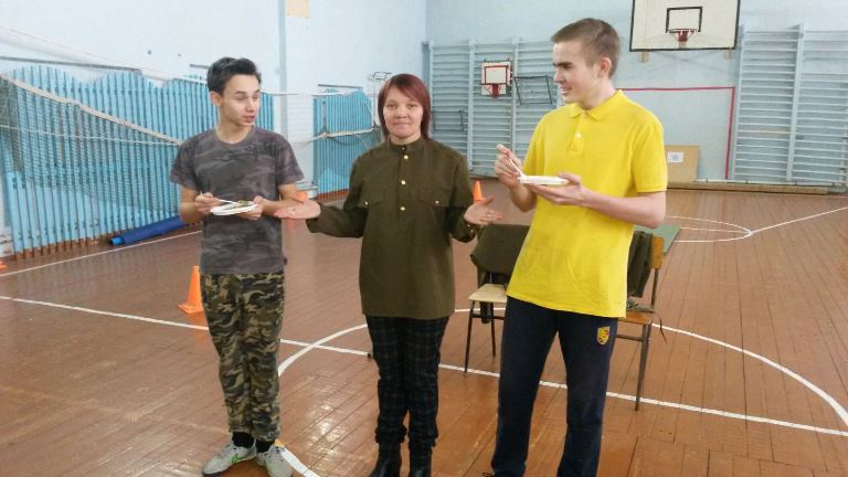 По команде они должны были надеть армейскую форму. Все выглядело очень забавно, некоторым эта форма была очень даже к лицу. Самым «вкусным» конкурсом был конкурс «Обед». Двум ученикам были предложены блюда из зеленого горошка. Они должны были съесть всю порцию. Кто-то ел быстро, чтобы получить балл, а кто-то не торопился и ел медленно, ведь действительно, в армии нужно есть еду с удовольствием и запасаться энергией, ведь впереди еще тяжелый день. Эмоциям болельщиков не было предела, особенно наш классный руководитель Эльза Яппарова болела громче всех, ведь именно она старается воспитать в нас любовь к спорту и чувство патриотизма.