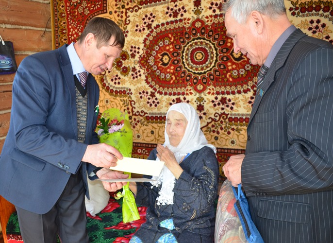 С юбилеем именинницу поздравили заместитель Главы Агрызского муниципального района Нурисламов Ришат Тимерович и Глава Кадыбашского сельского поселения Рамазанов Ильфат Галиевич. Пожелали Минихаят апе крепкого здоровья, любви и заботы близких и вручили подарки.