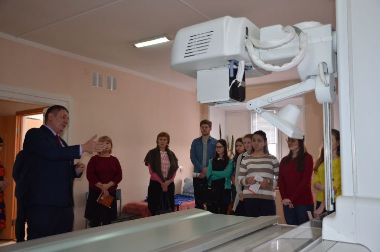 Вторая часть встречи прошла в виде экскурсии. Ребят провели в рентгенкабинет. Здесь рассказали о современнейшем цифровом флюорографе, приобретенном по республиканской программе. Продемонстрировали, как он работает. Попутно представили программы, поддерживающие молодых специалистов.