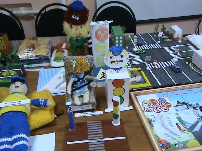 В конкурсе участвовали более сорока соцработников района. Они сделали макеты для изучения правил дорожного движения. Среди них есть вязаные, вышитые изделия. Таскира Шайдуллина из Девятерни, Гузалия Хасанова из Агрыза вылепили машины, героев мультфильмов из пластилина.