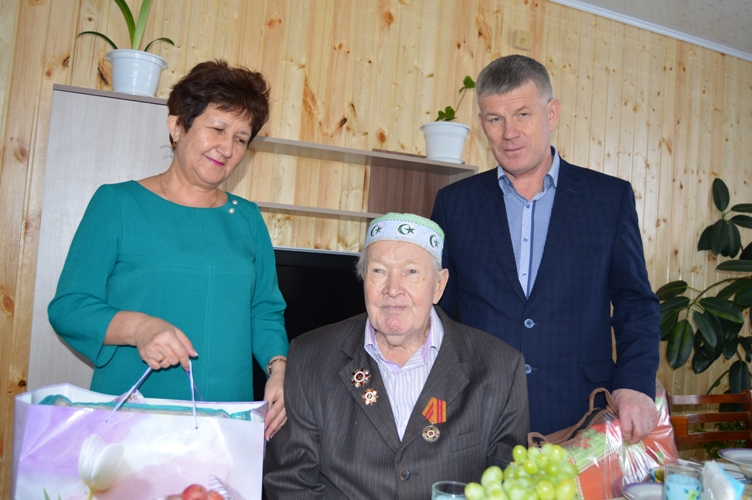 Поздравить его с юбилеем и с праздником Днем защитника Отечества пришли руководитель аппарата Совета района Резида Закирова, глава Кичкетанского сельского поселения Зульфат Нуриев. Так же в этот день поздравить с днем рождения ветерана войны и тыла собрались близкие и родные люди.