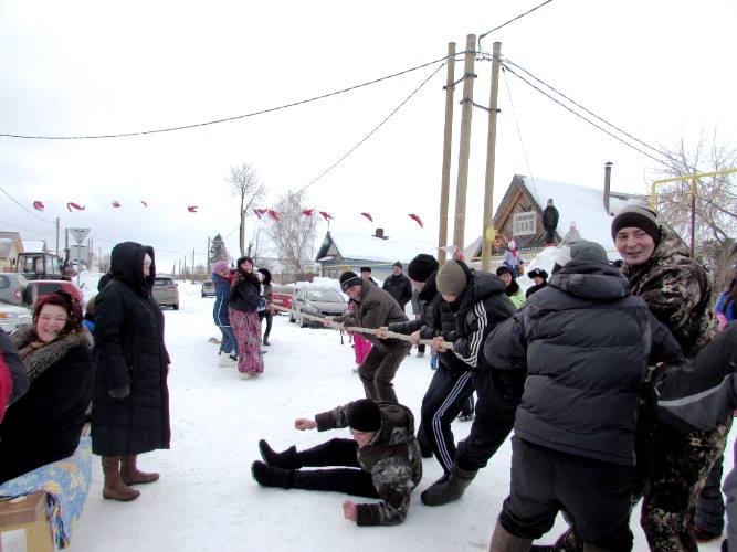 На участке празднования была расположена полевая кухня, где жители и гости могли подкрепиться гречневой кашей и согреться горячим кофе и чаем, и, конечно же, попробовать традиционное блюдо — блины. Были соревнования перетягивание каната, семейные эстафеты на санках.