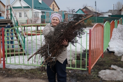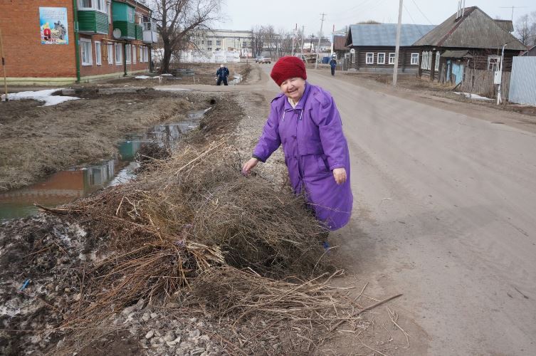 Выходят на общественную работу и стар и млад. Самой старшей активистке 80 лет. Она с радостью помогает убирать за всю зиму мусор, старые ветки. У кого были лопаты, раскидывали снег. На вывоз пригласили трактор.