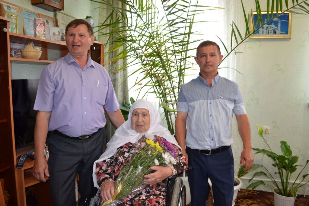 Аны гомер бәйрәме белән район башлыгы урынбасары Ришат Нурисламов, авыл җирлеге башлыгы Рафил Закиров котладылар.