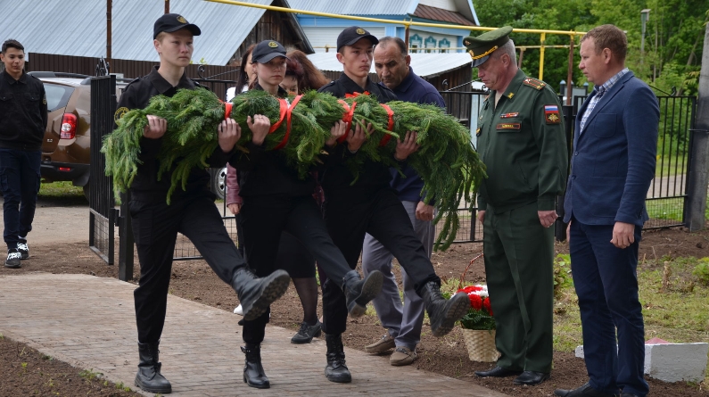 Алар сугыш корбаннарын бер минут тынлык белән искә алдылар. Обелискка венок һәм чәчәкләр салдылар.