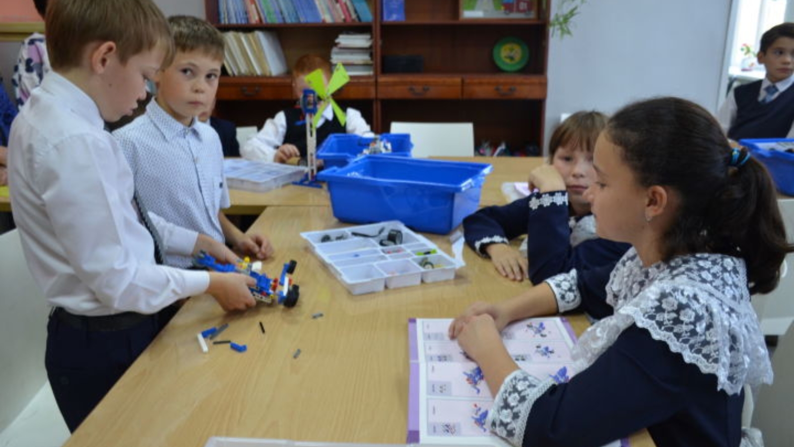 Яшүсмерләр технология түгәрәген (укытучысы Илзидә Нәбиуллина) иң яраткан шөгыль дип атаулары очраклы түгел. Укучыларның беренче иҗатлары-җил тегермәне һәм робототехника ярдәмендә ясалган эт булды. Әйтергә кирәк, барысы да эшли: тегермән әйләнә, ә дустым хәрәкәтләнә. Малайларның сүзләренә караганда, алар машиналар, төягечләр һәм башка техника булдыру турында хыяллана.