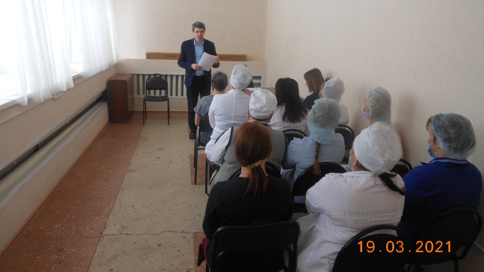 19 март көнне район үзәк хастаханәсендә клиент хезмәте җитәкчесе урынбасары Айрат Җиһангәрәев район үзәгендә медицина персоналы белән очрашты.