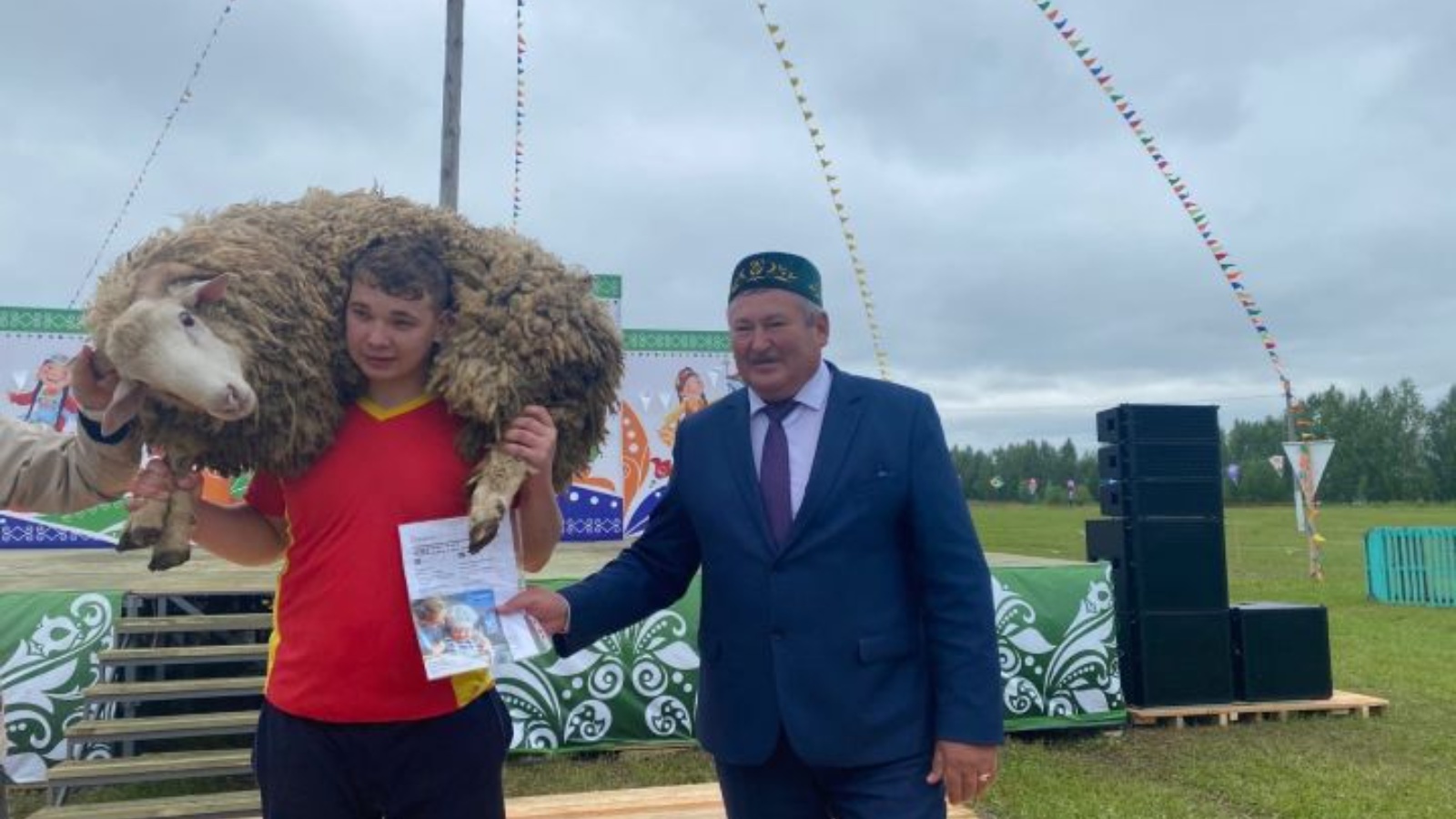 Баш батырны район башлыгы урынбасары Илфат Ямалиев котлады. Традицион тәкә һәм суыткыч тапшырды.