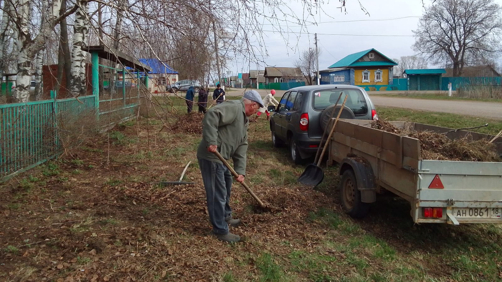 Балалар бакчасы территориясен җыештырдылар. Иске Эсләк авылы урамнары.