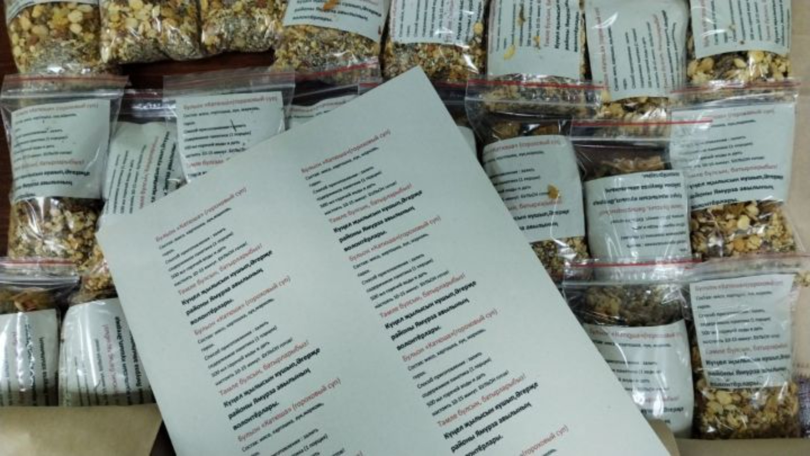 Бу юлы алар коры аш хәзерләргә булдылар. Коры ашларны кәстрүлләрдә пешермиләр, банкаларга таратмыйлар. Авыл халкы ашларны берәм-берәм төреп, пакетлар буенча төрә.