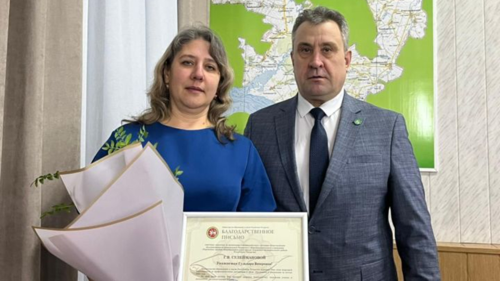 2023 ел йомгаклары буенча мәгариф һәм тәрбия өлкәсендә һөнәри казанышлары өчен Татарстан Республикасы Мәгариф һәм фән министрлыгының Рәхмәт хаты белән Терсинск урта гомуми белем бирү мәктәбенең балалар иҗтимагый берләшмәләре белән хезмәттәшлек итү һәм тәрбияләү буенча директор киңәшчесе СУЛЕЙМАНОВА Гөлнара Венеровна бүләкләнде