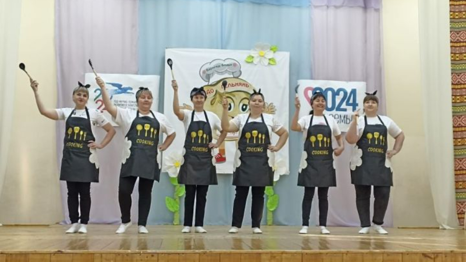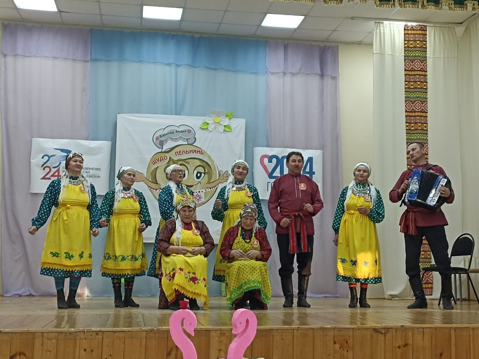 Быел Алабуганың "Инвожо" ансамбле, Менделеевскиның "Купанча", малопургиянең "Азвесь нюжа" ансамбле, шулай ук район командалары - Кадыбаш авыл клубы, Касаевның "Матур кызлар", Шарашадиниянең "Яшь йорт хуҗабикәләре", Новоаккузинский "Умырзая" һәм Варклед-Бодьинский авыл клубын "Инвис" халык вокаль ансамбле тәкъдим итте. Шулай ук чакырылган кунаклардан һәм район җитәкчелегеннән тагын бер команда җыелды.
