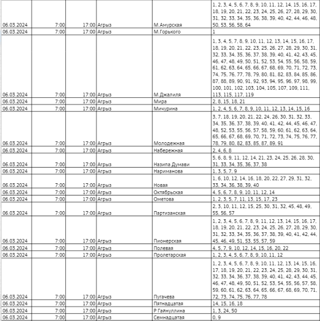 "Энергосбыт" Әгерҗе урамнарында электр энергиясен планлы рәвештә сүндерү турында кисәтә. Ремонт эшләре 6 мартта 7.00 сәгатьтән 17.00 сәгатькә кадәр узачак.