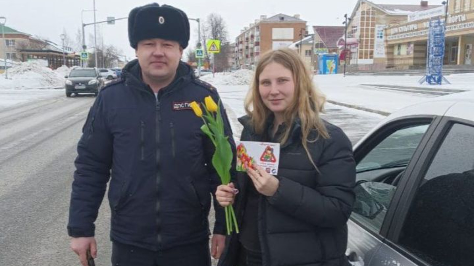 Дәүләт автоинспекциясе хезмәткәрләре Халыкара хатын-кызлар көнендә Әгерҗе районында акция үткәрделәр - инспекторлар машиналар юлларында руль артындагы хатын-кызлар белән туктаттылар һәм документларны гади тикшерү урынына аларга чәчәкләр тапшырдылар һәм 8 Март белән котладылар.
