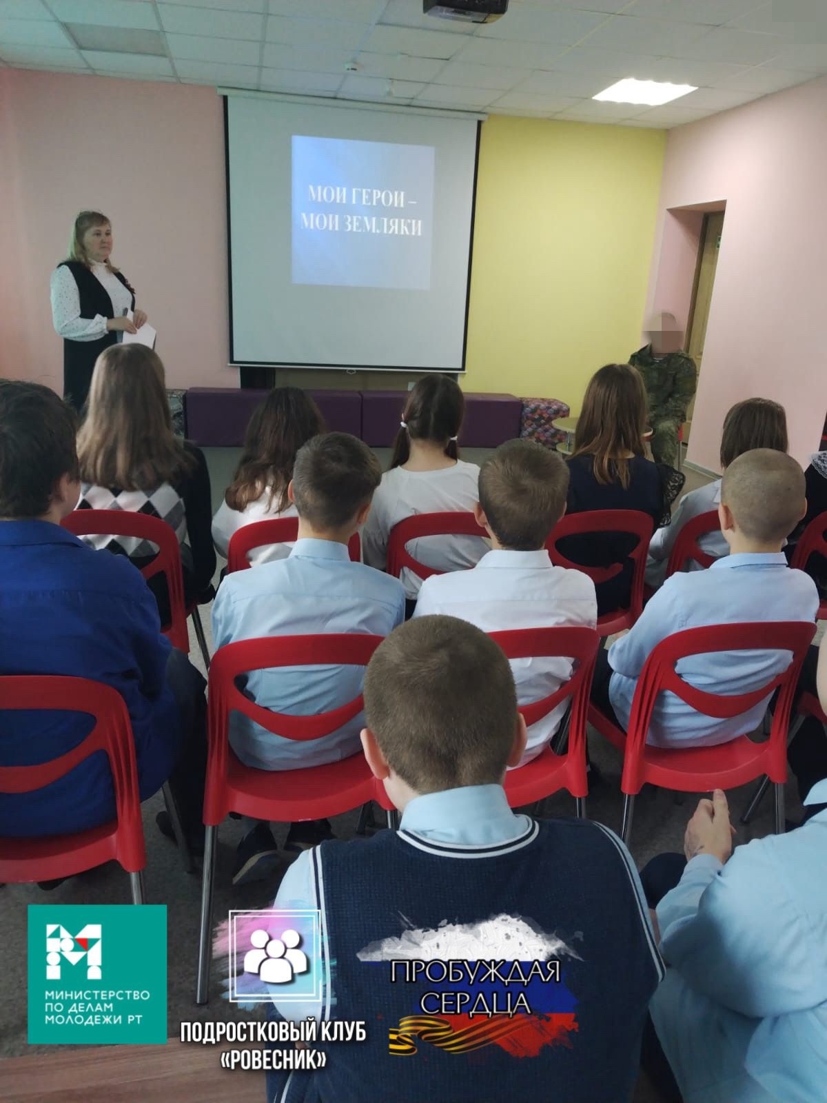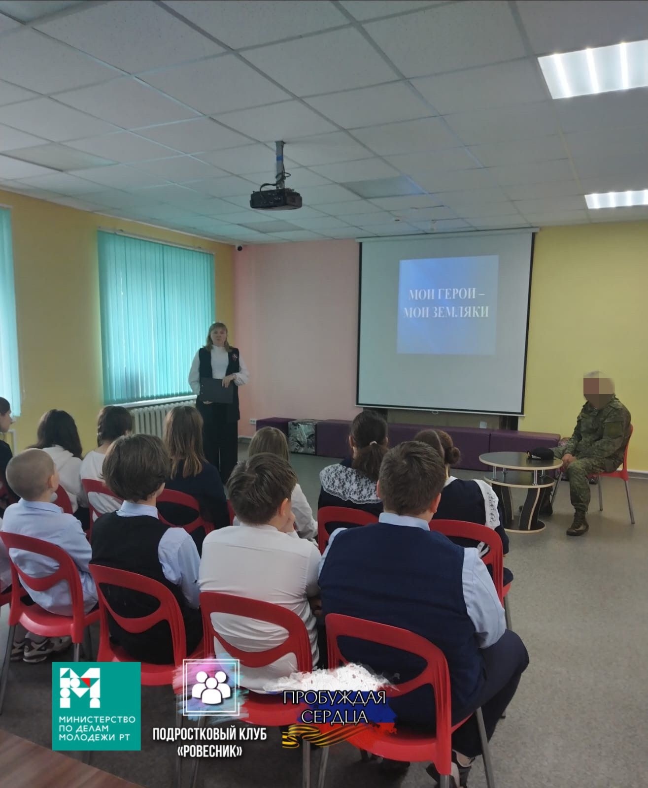 "Йөрәк уяну" социаль әһәмиятле проекты кысаларында "Ровесник" яшүсмерләр клубында махсус хәрби операция катнашучысы белән очрашу узды.
