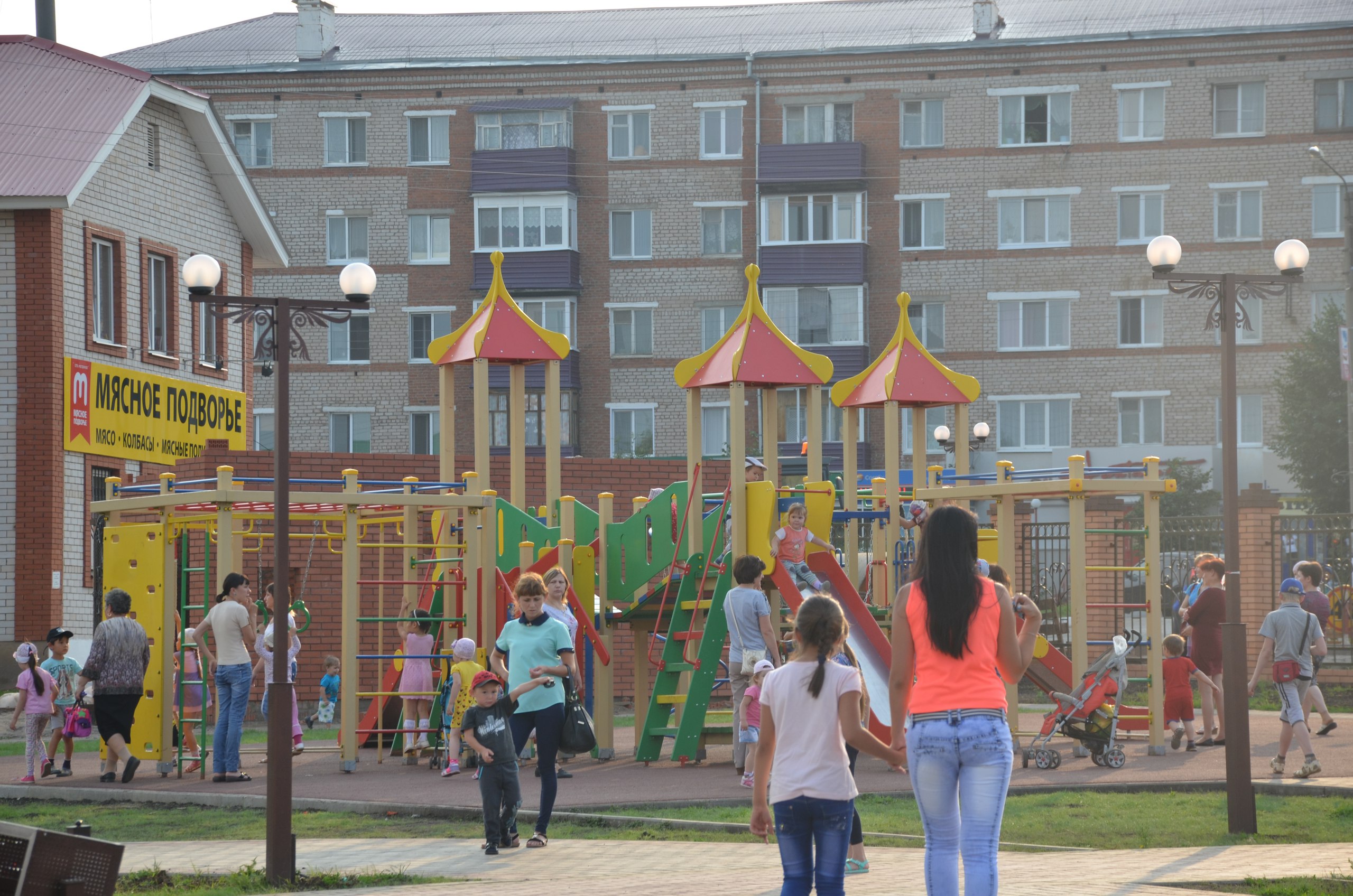 Биредә өлкәнрәк балалар һәм балалар өчен тренажерлар, шулай ук баскетбол һәм волейбол өчен бәдрәфле спорт мәйданчыгы да бар.
